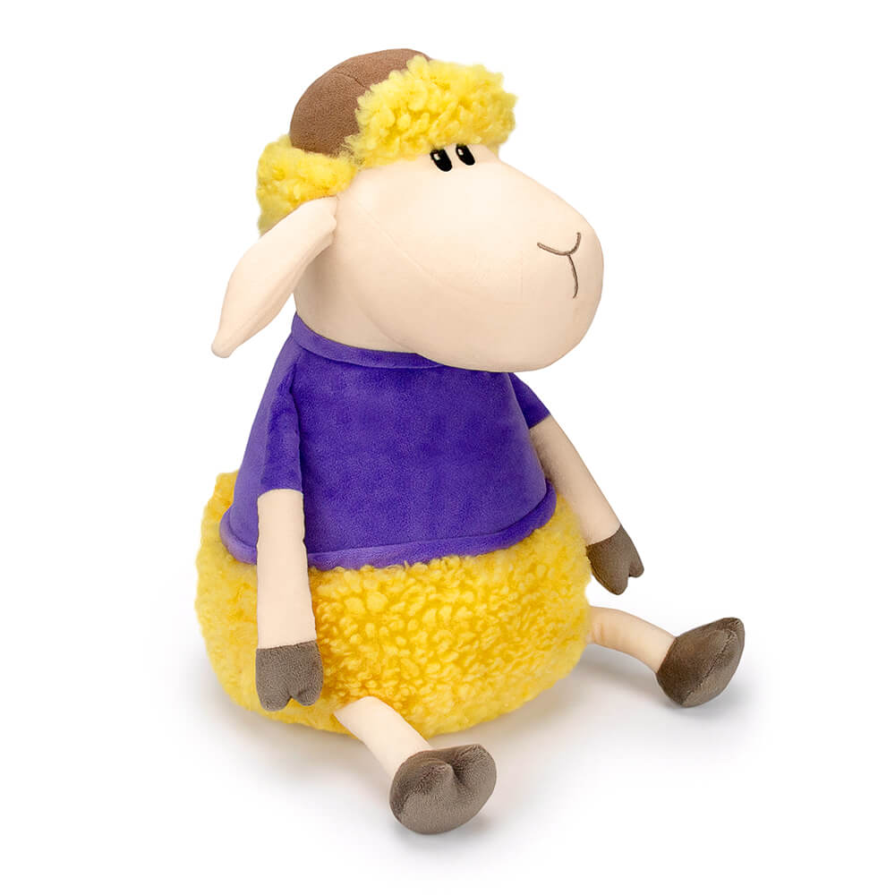 Макар — персонаж, который сразу вызывает улыбку и тёплые чувства. Его объёмное тело словно наполнено мягкими облаками: пушистый насыщенный жёлтый мех создаёт ощущение уюта и нежности. Мордочка, длинные ушки и ножки в спокойном кремовом оттенке гармонично дополняют образ.