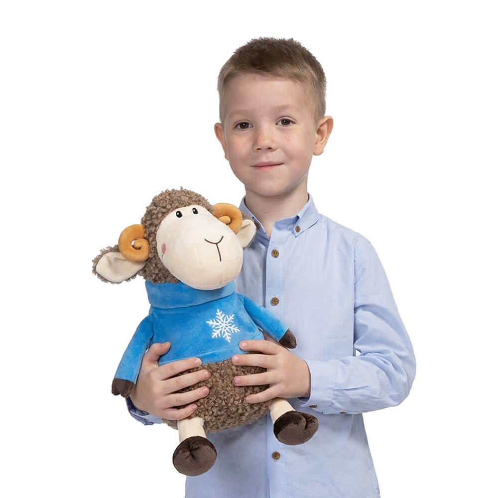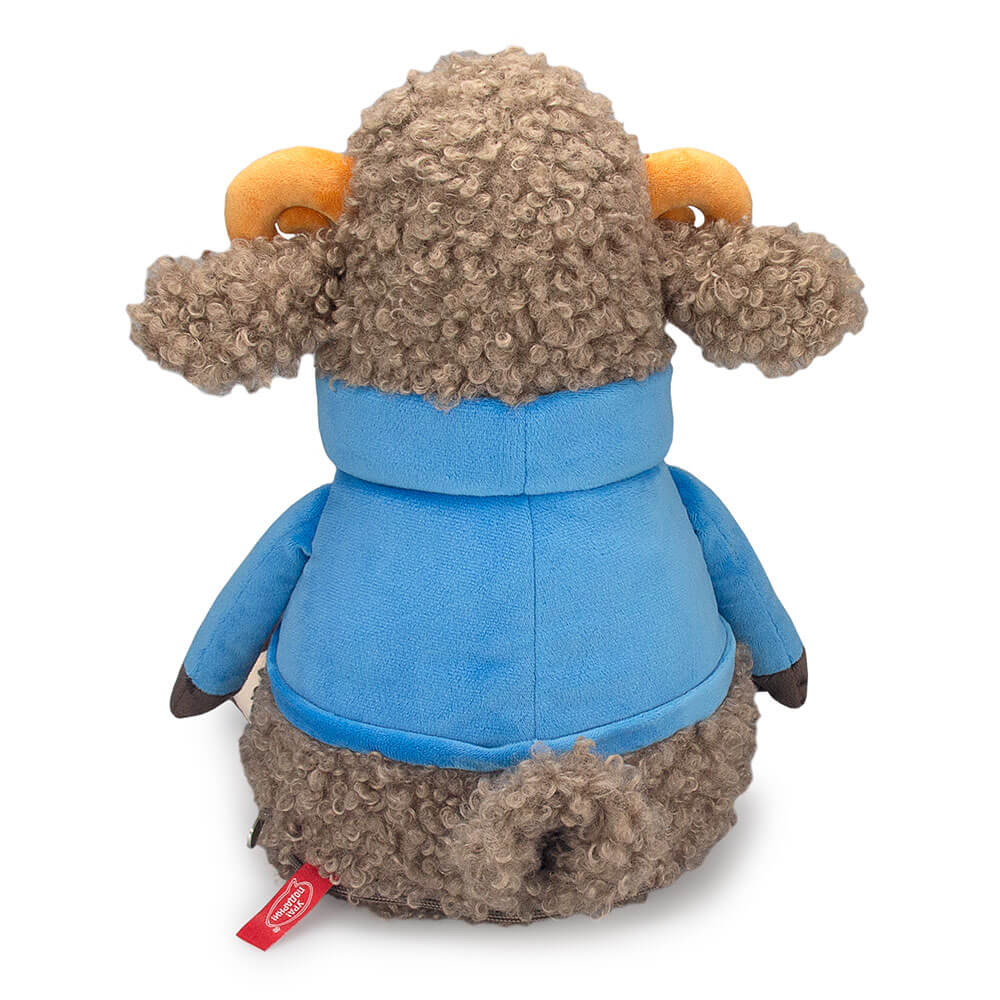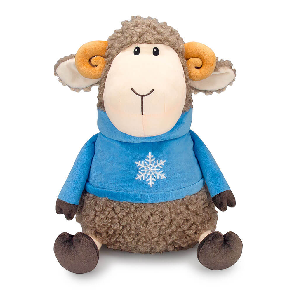 Барашек Захар — игрушка-упаковка Символ 2027 года. Его мех дымно-коричневого оттенка выглядит невероятно уютно, а длинная мордочка и аккуратные вставки на ушках цвета крем-брюле словно созданы для того, чтобы вызывать умиление. Тёмно-коричневые копытца и мягкие закрученные рожки в жёлто-оранжевой гамме так и просятся, чтобы их потрогали.